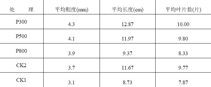 供 試 的 “ 新 壯 態(tài) ” 對(duì) 臍 橙 秋 生 長 有 著 明 顯 的 促 進(jìn) 作 用 , 與 清 水 空 白 對(duì) 照 存 在 著 顯 著 差 異 性 , P300 處 理 , 秋 梢 平 均 粗 度 4.3 毫 米 , 較 CK1 高 出 1.2 毫 米 , P500 處 理 秋 梢 平 均 粗 度 4.1 毫 米 , 較 CK1 高 出 1 毫 米 , P800 處 理 秋 梢 平 均 粗 度 3.9 毫 米 , 較 CK1 高 出 0.8 毫 米 ; 平 均 長 度 P300 較 CK1 高 出 4.14 厘 米 , P500 較 CK1 高 出 3.24 厘 米 , P800 較 CK1 高 出 0.64 厘 米 ; 平 均 葉 片 數(shù) P300 較 CK1 高 出 2.13 片 , P500 較 CK1 多 出 1.93 片 , P800 較 CK1 高 出 0.46 片 。